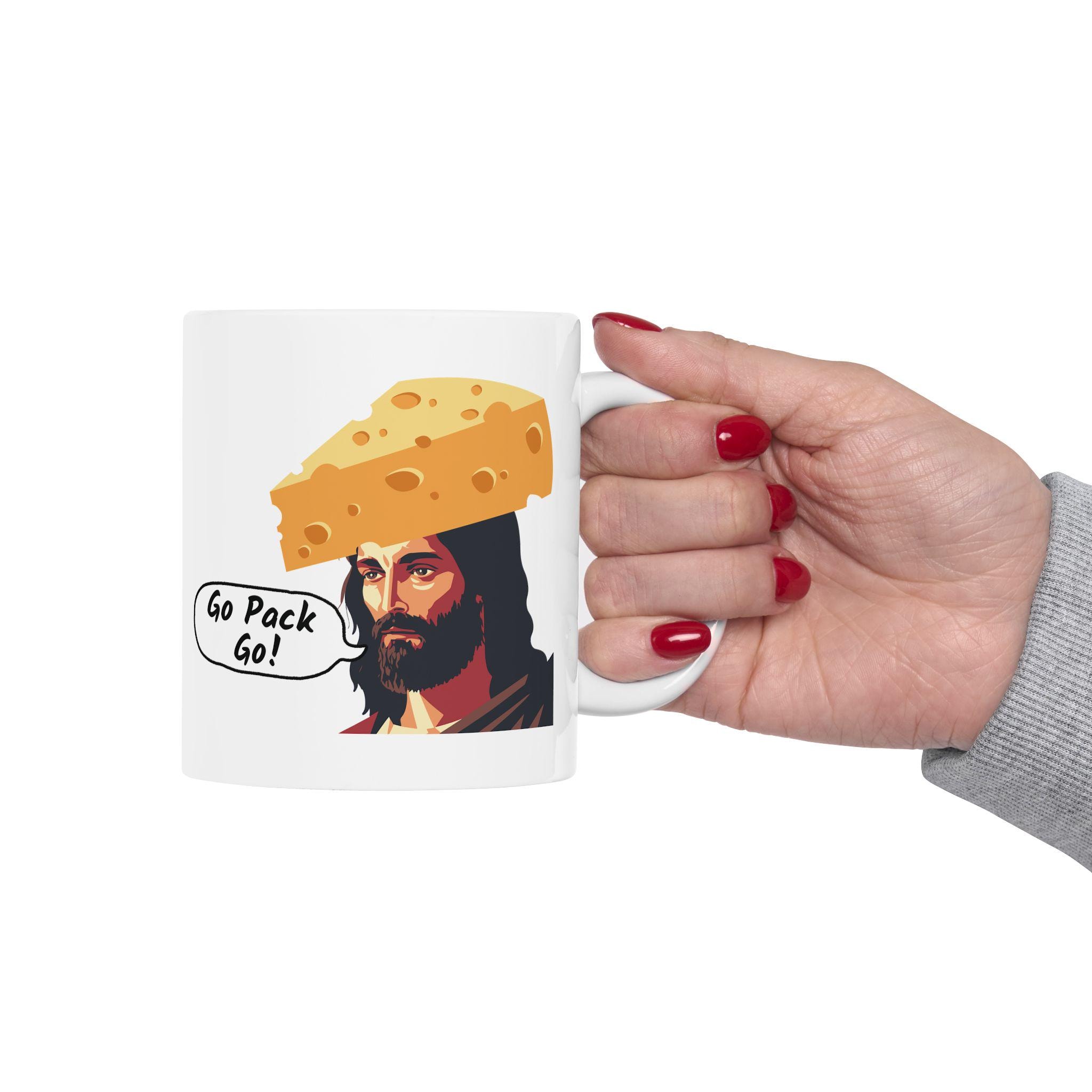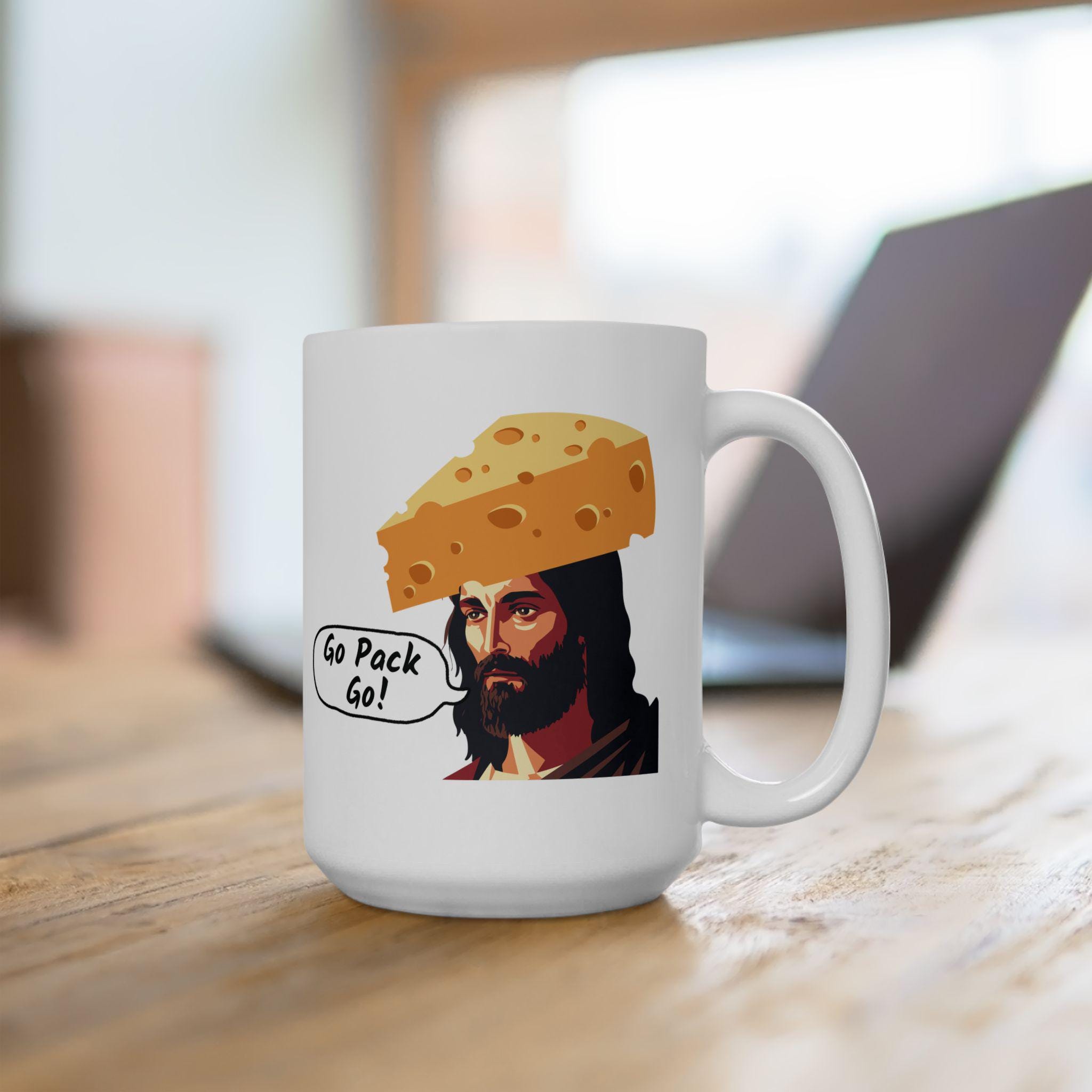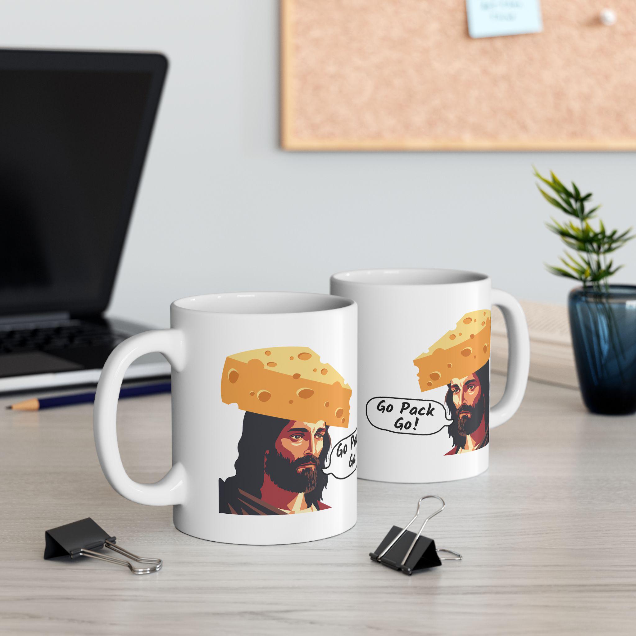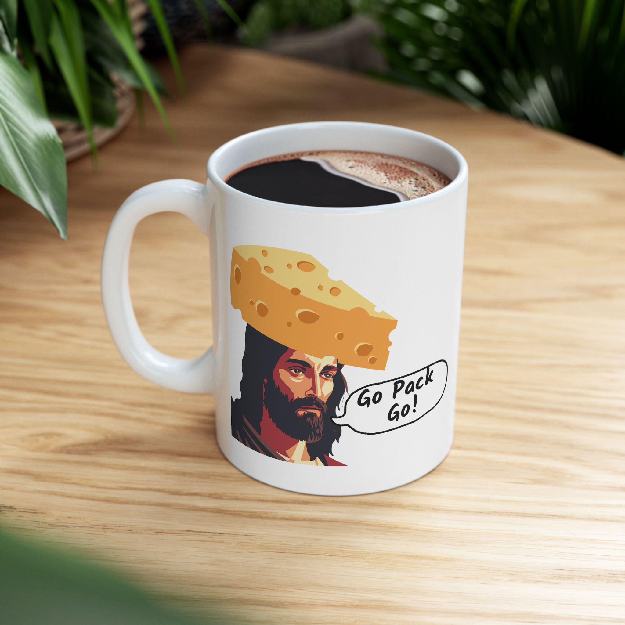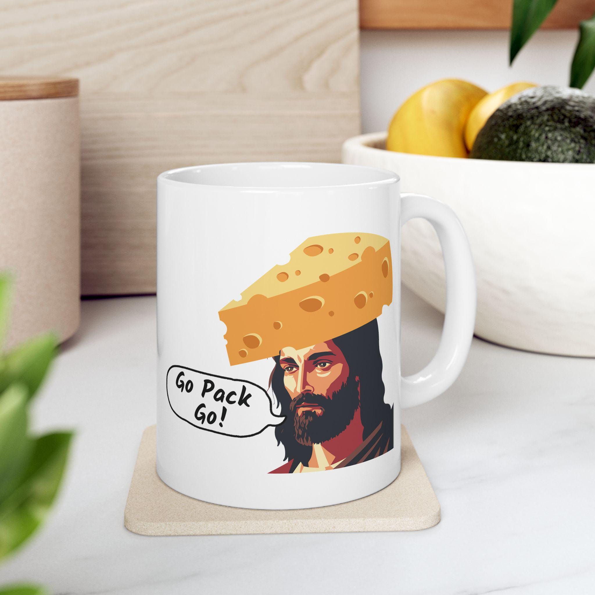 A funny Wisconsin Packers Cheesehead 'Go Pack Go' mug that is perfect for any die-hard Packers fan. This mug exudes team spirit and is ideal for enjoying your morning coffee or tea. A great gift for football fans and supporters of the Green Bay Packers. Perfect for celebrating game day, tailgates, or just showing off your team pride.