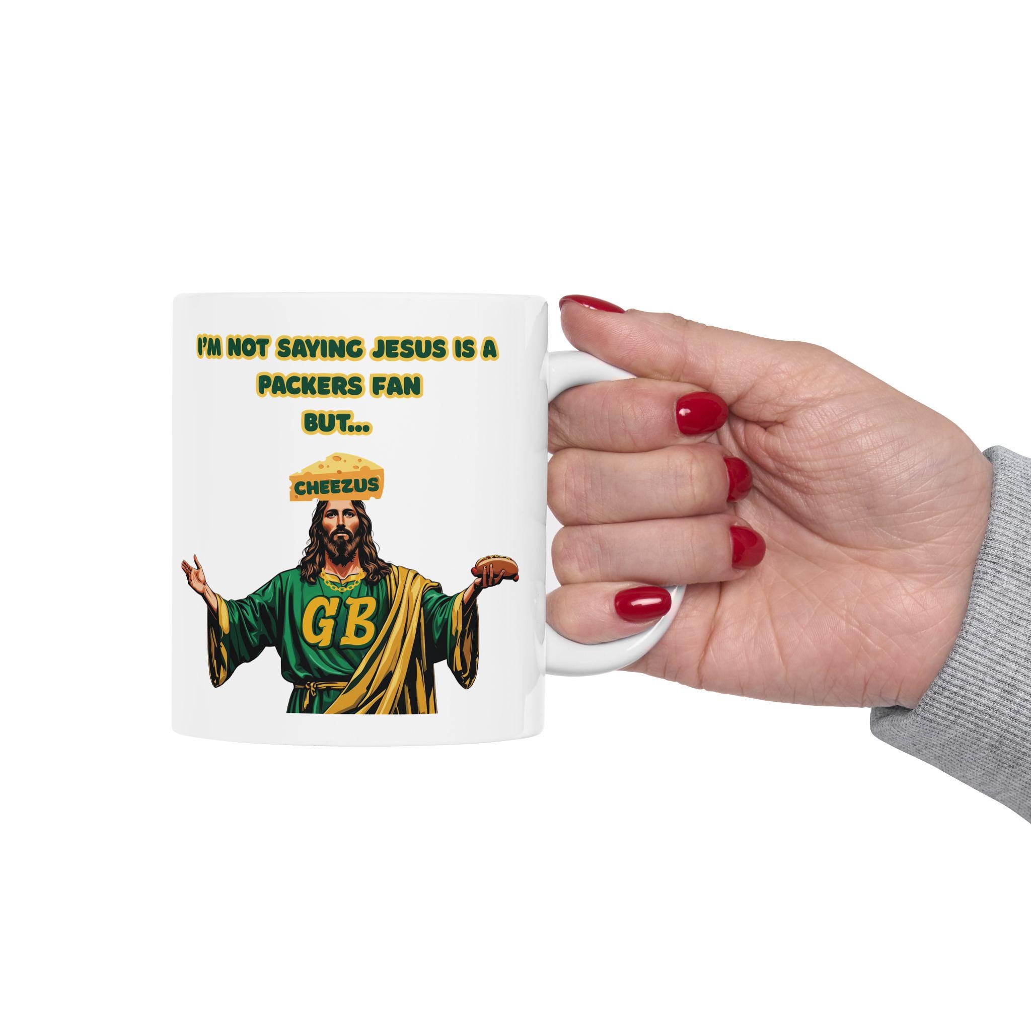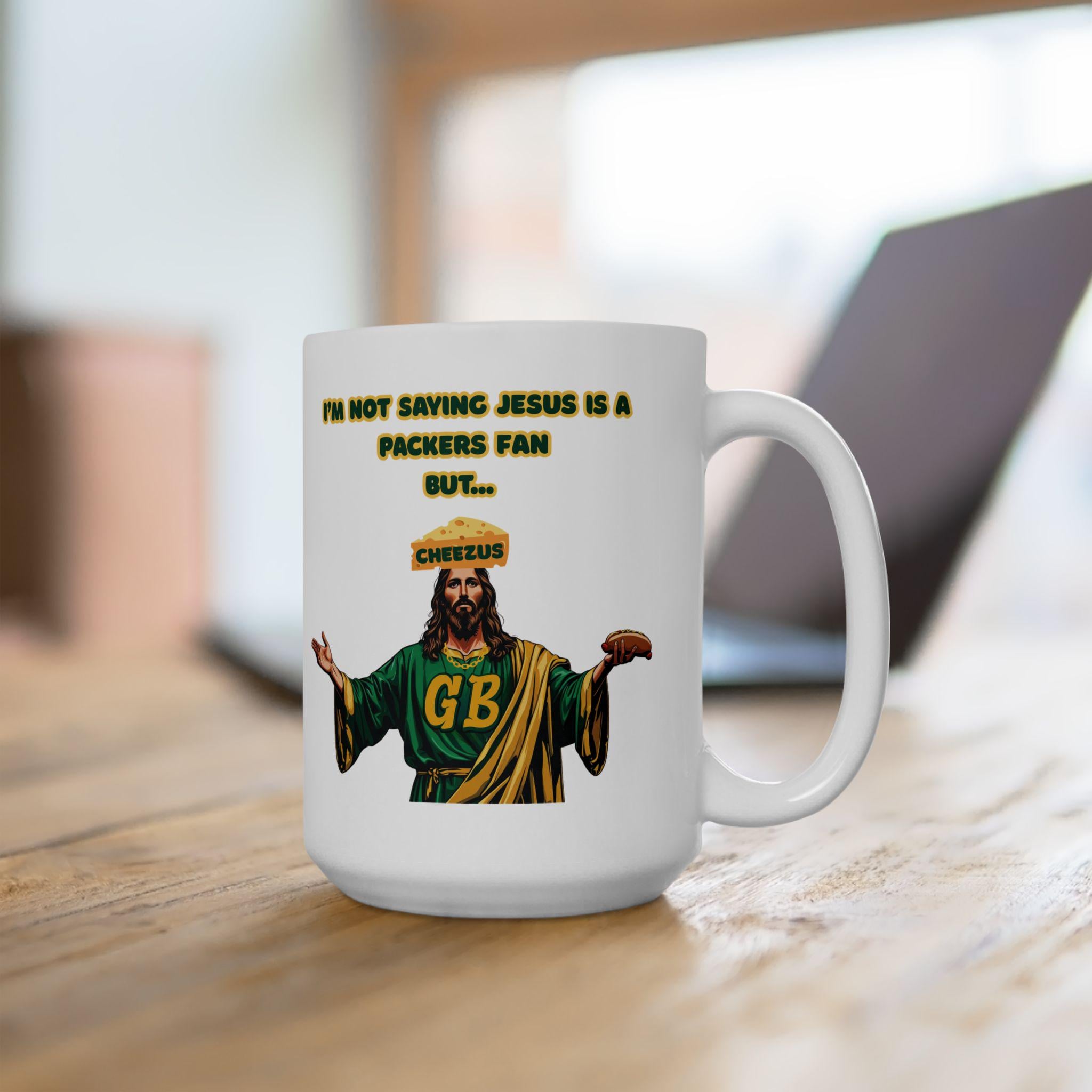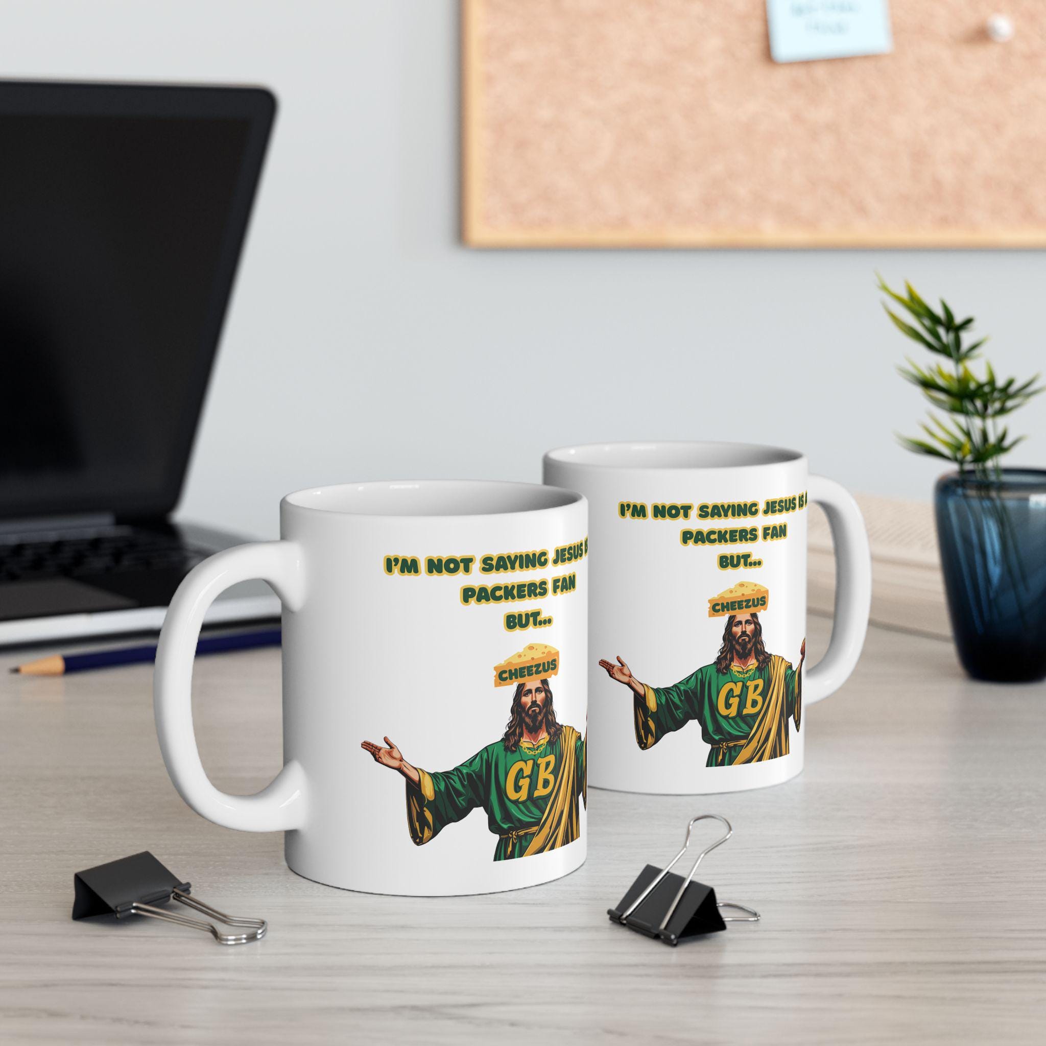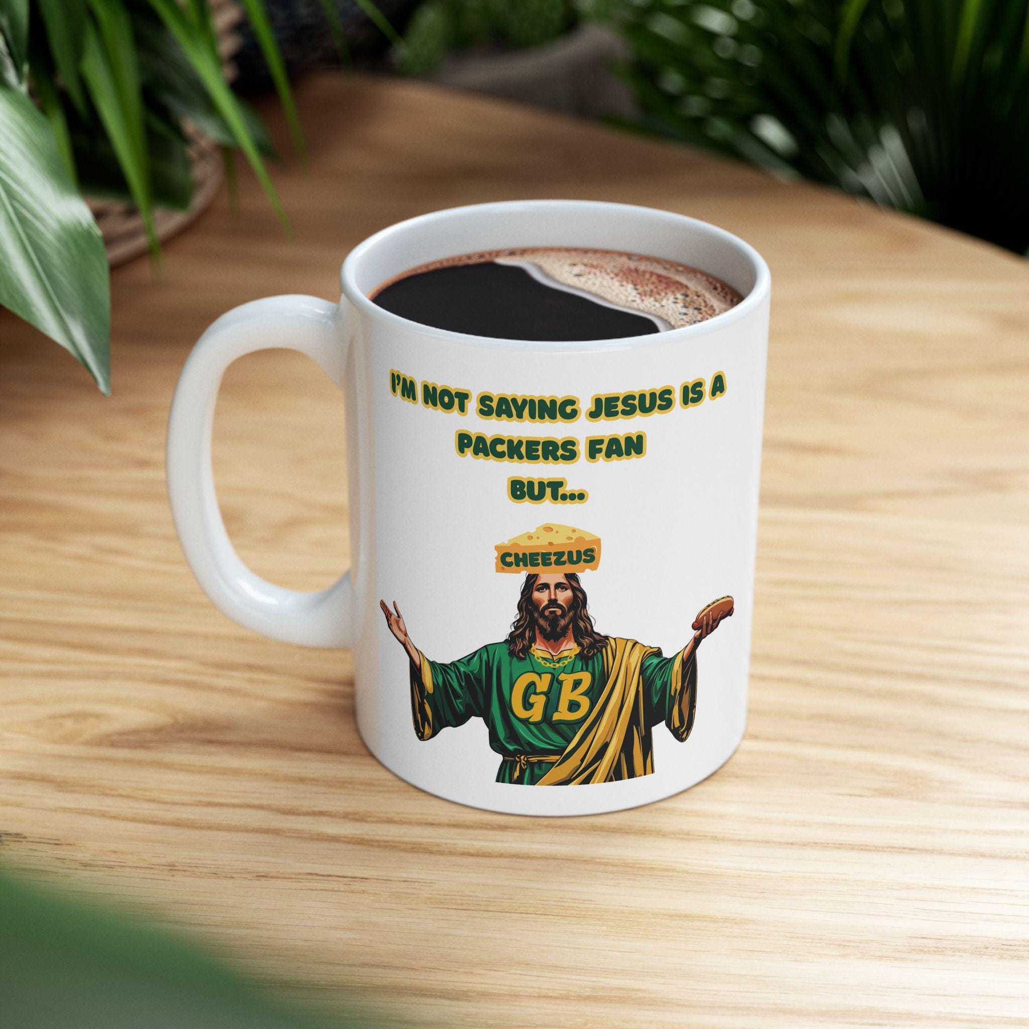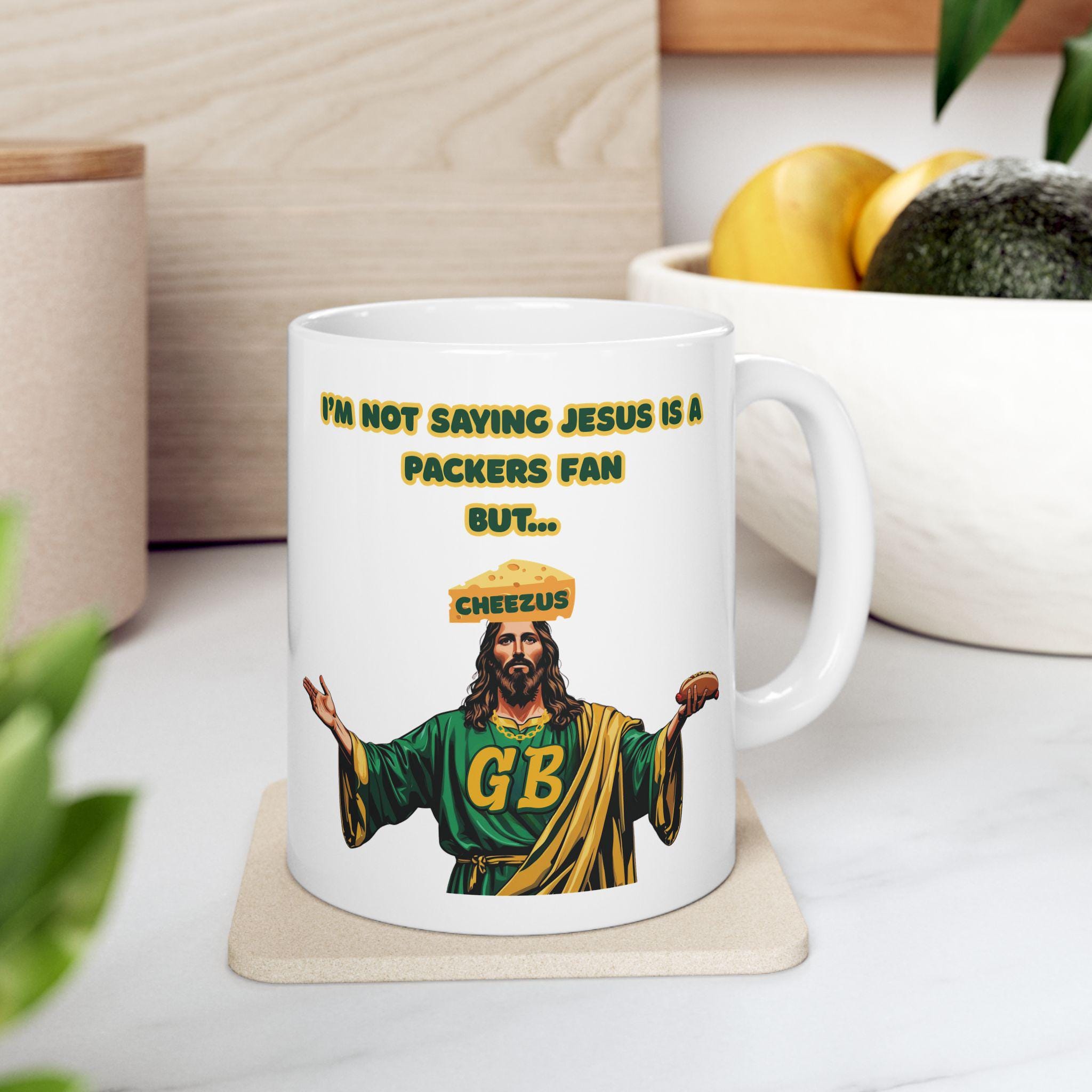 This glossy ceramic mug brings a cheeky, faith-forward sense of humor to morning coffee and late-night tea alike. The playful 'Packers Jesus' design sparks smiles and conversation — whether it’s perched on a work desk, warming hands during a tailgate, or sitting on the kitchen counter on game day. The bright, high-resolution print pops against the clean white ceramic, giving the artwork real presence. It’s sturdy enough for daily use and convenient for busy routines: pop it in the microwave to warm your drink and toss it in the dishwasher when you’re done. The comfortable C-handle fits easily in hand and the shiny finish makes the colors sing. For fans who love football, faith, or just a good laugh, this mug blends personality with practicality and livens up ordinary moments.