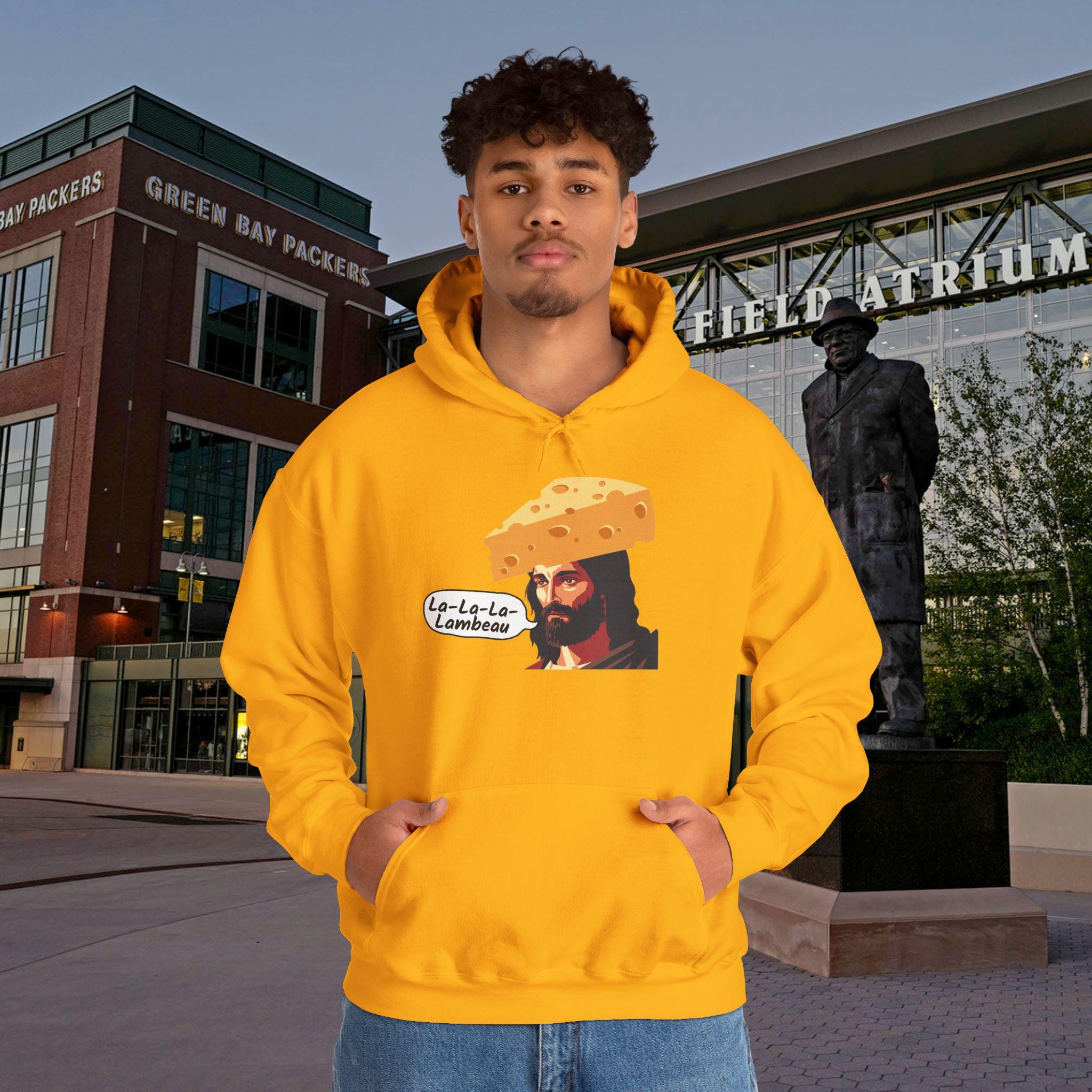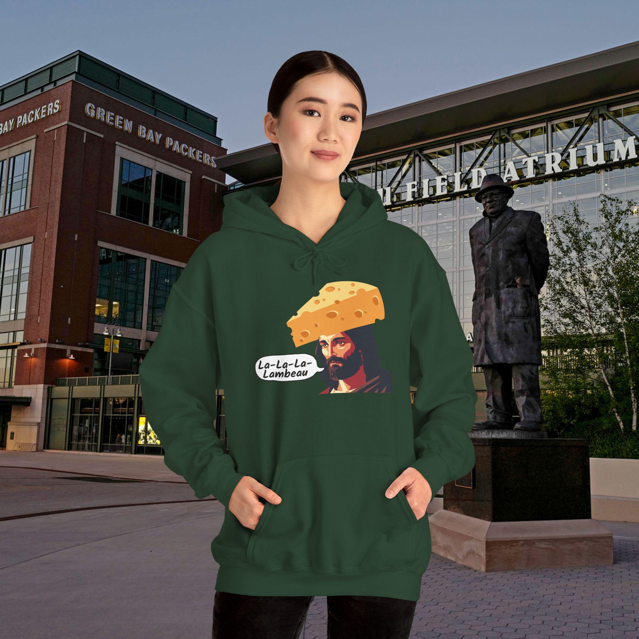 This hoodie brings together playful fandom and irreverent humor for fans who bleed green. The soft, mid-weight fabric and double-lined hood feel substantial on cooler evenings spent tailgating or watching the game at a friend’s house. A cheeky, faith-meets-football design sparks smiles and conversation — easy to wear to a casual meetup, a game-day watch party, or while wandering the stadium lot. The pouch pocket keeps hands warm between plays, and the color-matched drawcord and neat stitching give it a finished, lived-in look. It’s made to be thrown on with jeans and a cap, to shout team pride in a lighthearted, personal way.