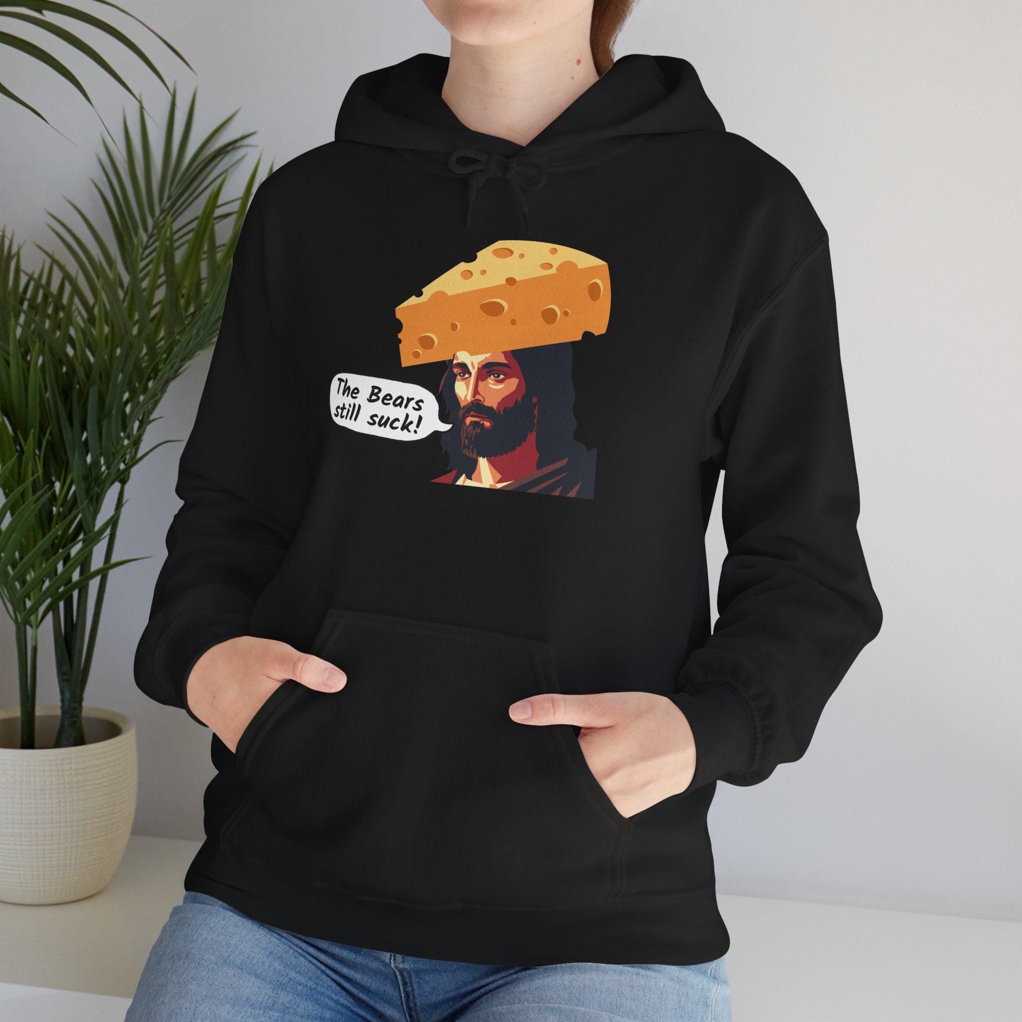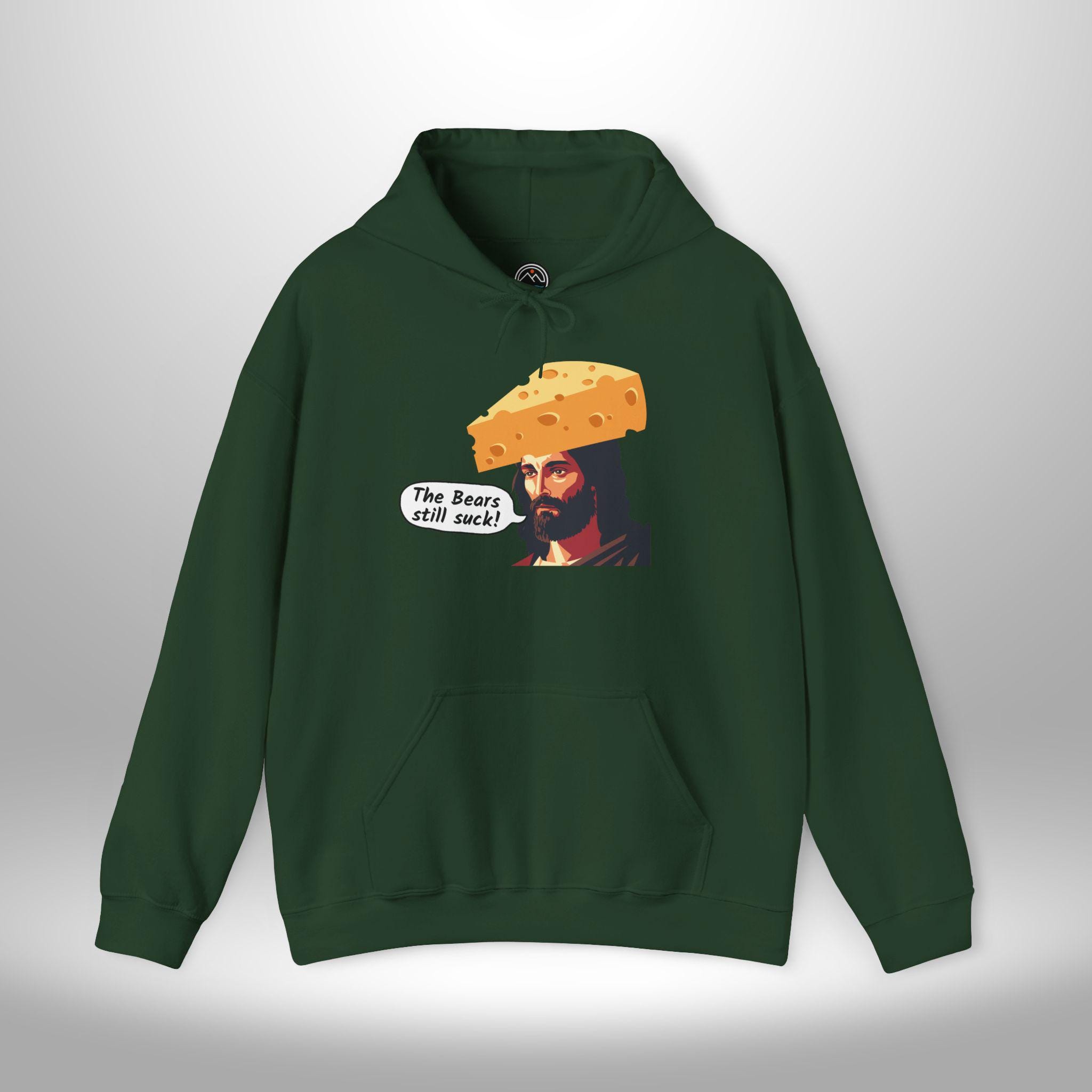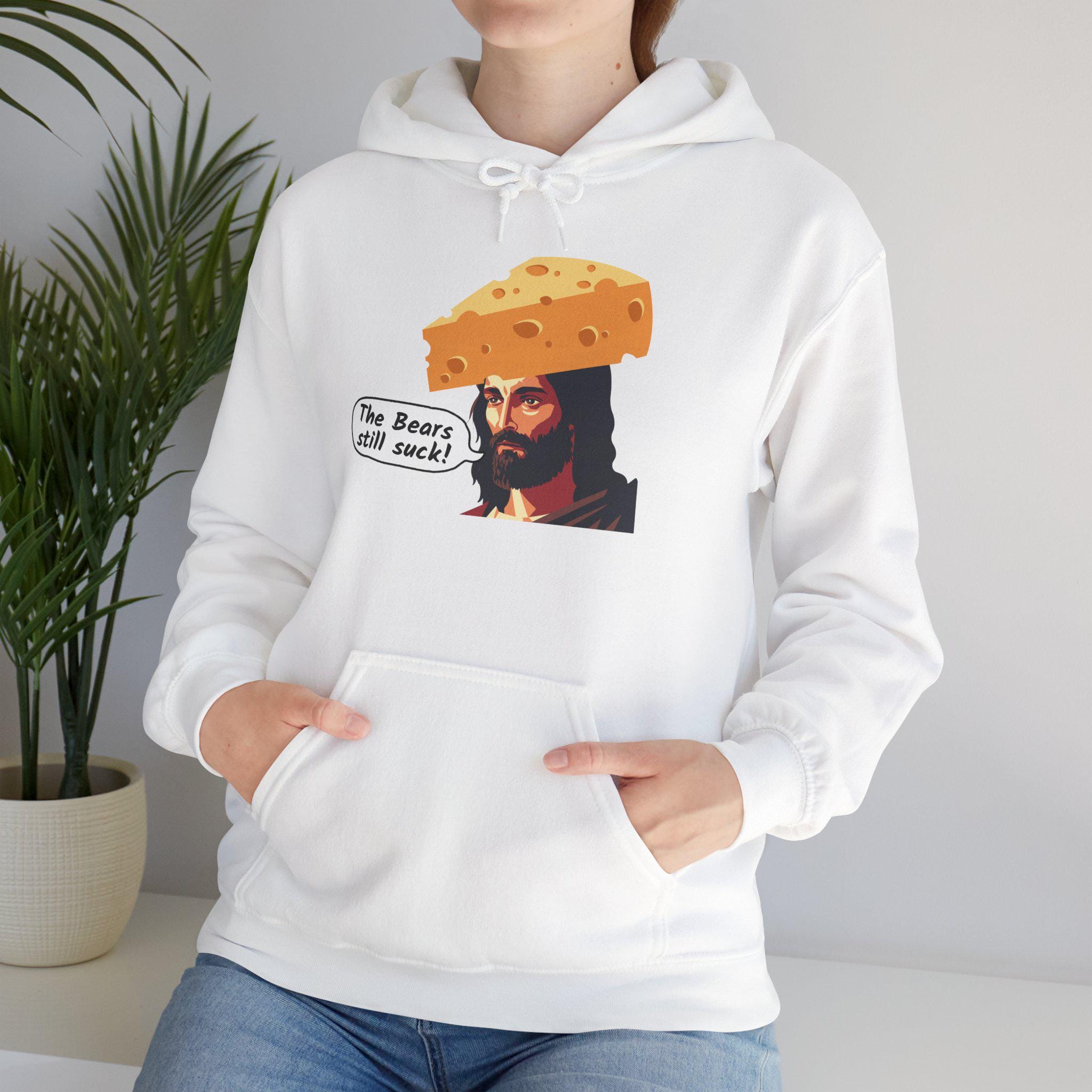 This sweatshirt speaks like a teammate heckling from the stands — loud, irreverent, and proudly green-and-gold. It wears like your go-to tailgate layer: thick enough to hold warmth through late-night chants, soft where it rubs your neck, and built to survive beer spills and bus rides home. The bold “the bears still suck jesus” design reads like a winning chant; it cracks up fellow fans, starts conversations with strangers, and keeps the rivalry alive. Toss it on for game day, postgame celebrations, or walking the dog while replaying the final drives. It’s for the fan who laughs at trash talk, collects rivalry memories, and wants clothing that feels like another loyal friend at their shoulder.