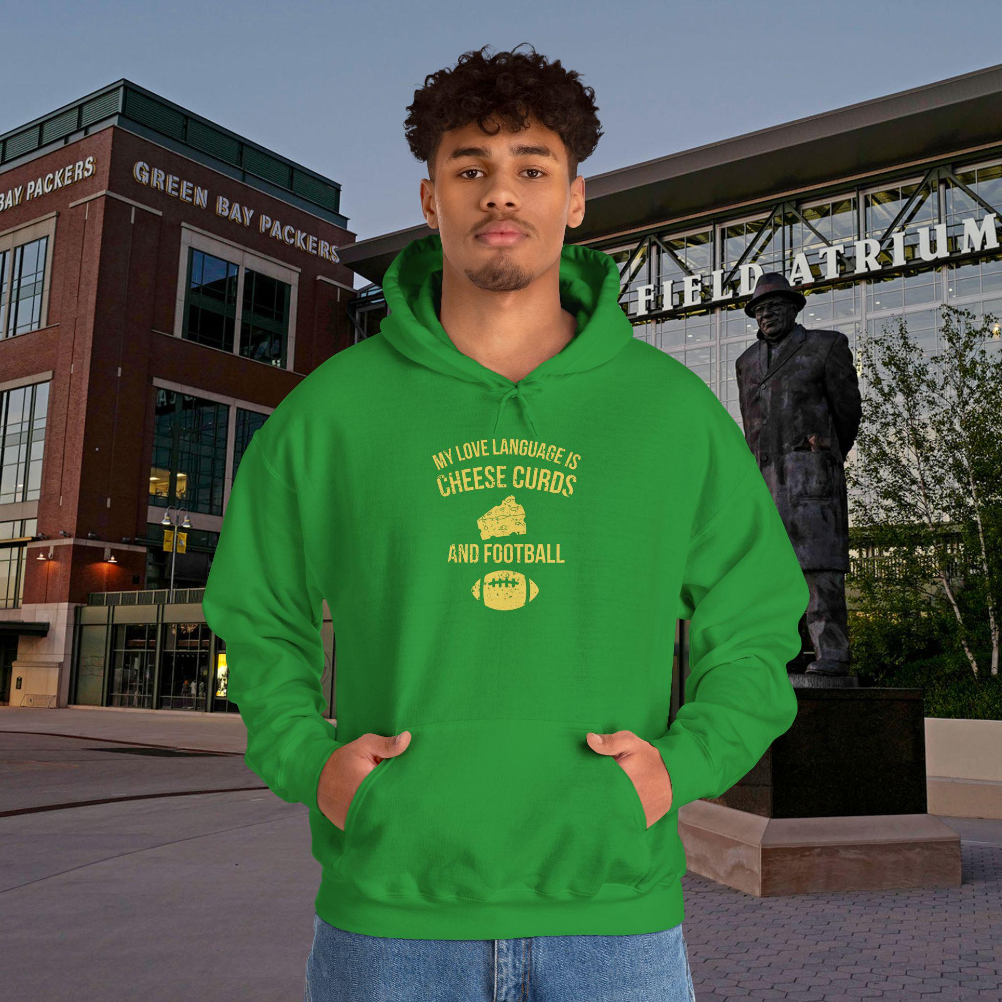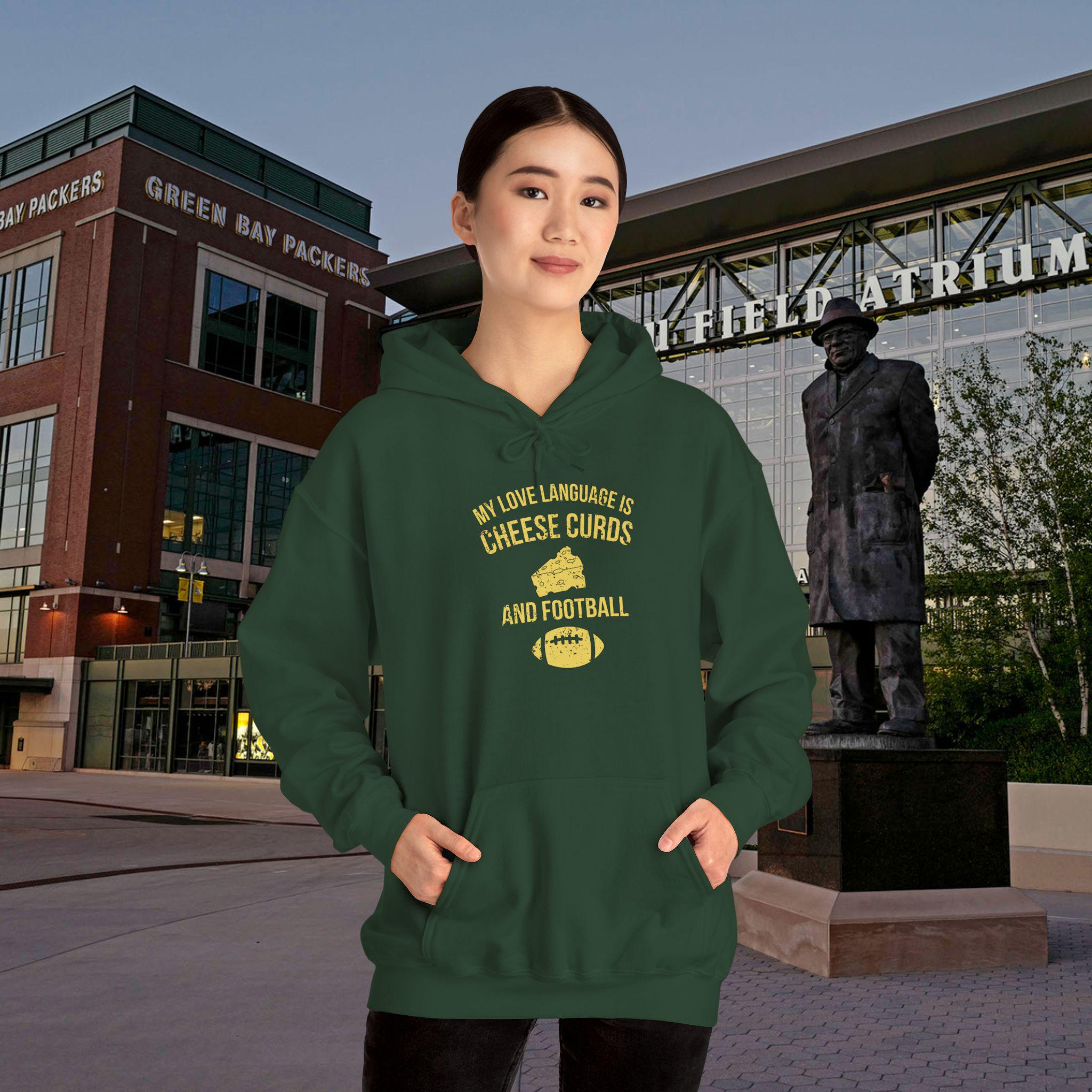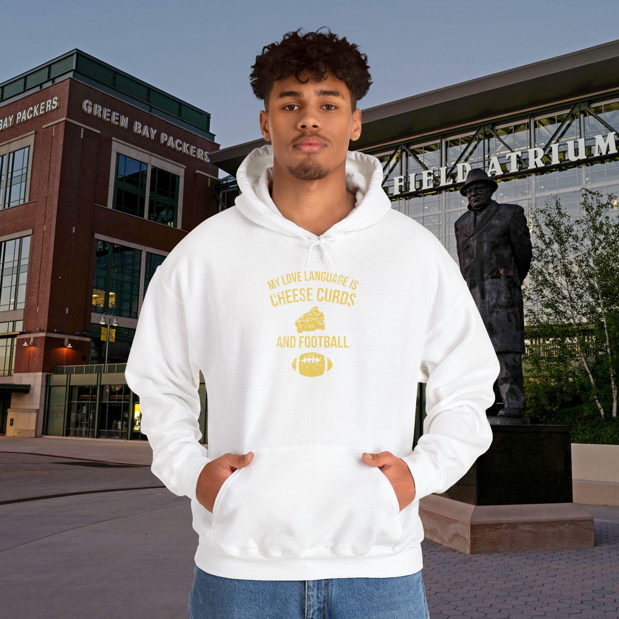 This hoodie speaks to anyone whose heart beats green and gold. Soft and substantial, it drapes like a second layer of fandom — warm hands tucked into the kangaroo pocket, hood pulled up against a chilly stadium wind. The design calls out a Packers-first love language: the quiet nod after a clutch play, the banter with friends during tailgate rituals, the way Sundays smell of grill smoke and good-natured rivalry. Wear it to watch parties, brisk morning walks, or game-day runs to the corner store. Embroidery and DTF print options give the graphics depth and texture, so your team pride reads as thoughtfully worn, not thrown on. This is for the adult fan who wants comfortable warmth, durable construction, and a piece that fits into the rituals that make football season feel like home.
