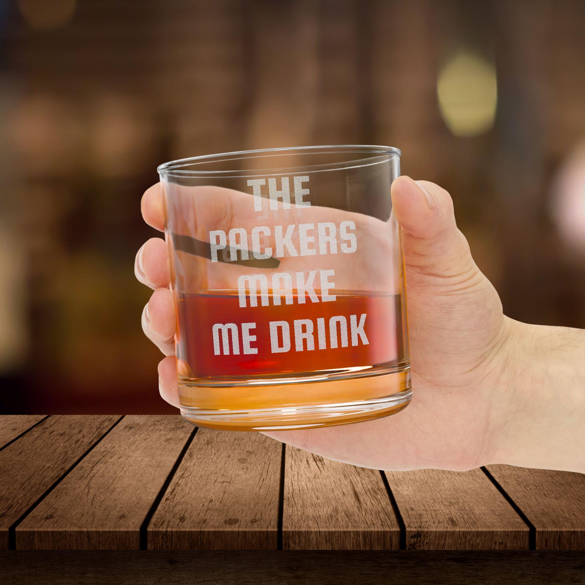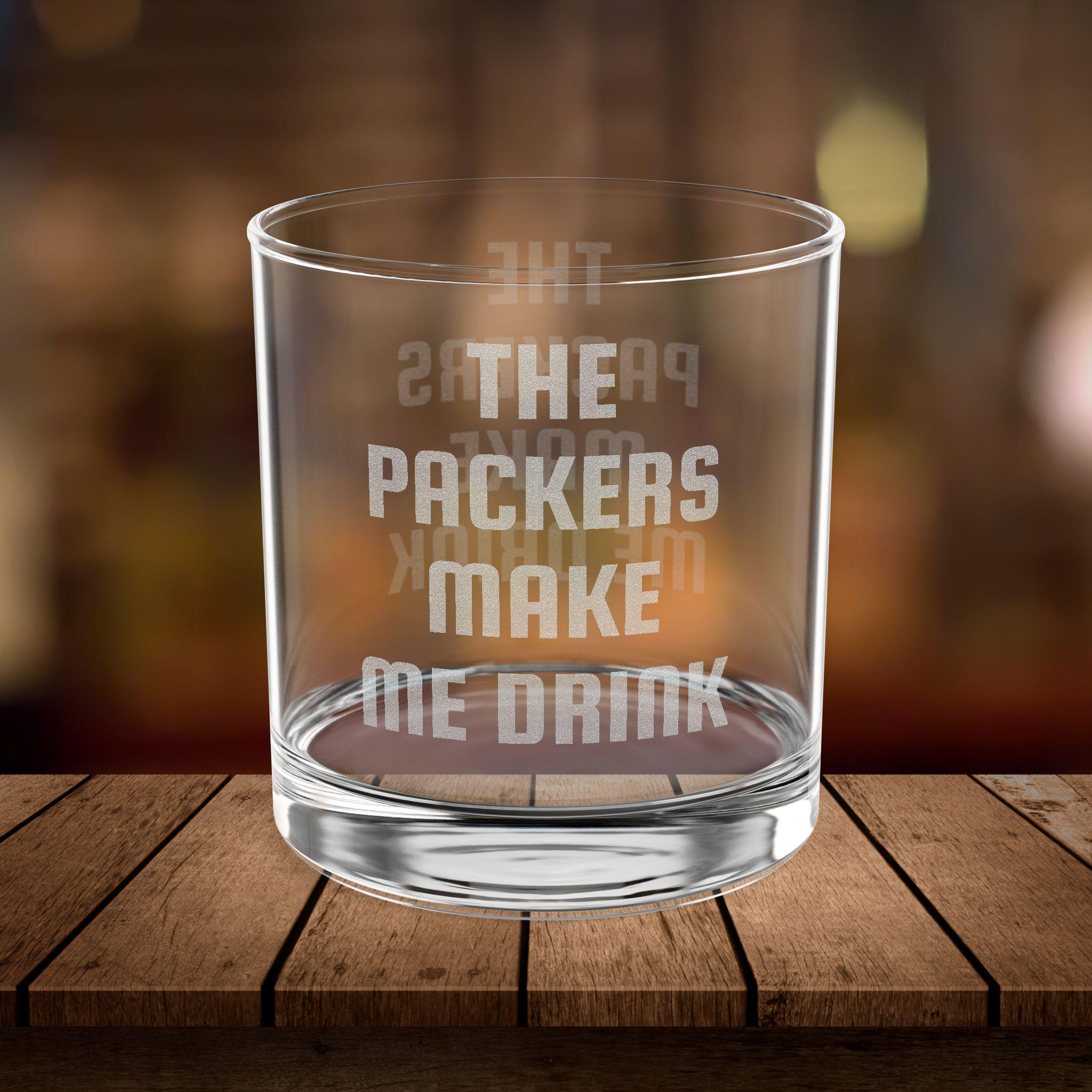 Raise a slow, smoky sip and let the room laugh with you. This 10.5oz engraved whiskey glass carries a bold, playful line—"THE PACKERS MAKE ME DRINK"—that lands like an inside joke at game night. Heavy enough to feel steady in your hand, the clear glass shows off amber whiskey, neat pours, or an ice-tumbled bourbon. The engraved text won’t fade, and the dishwasher-safe finish makes it easy to bring out again when the game slips and someone’s nerves fray. It belongs on a well-loved bar cart, at a tailgate where stories get louder, or beside the couch during a tense fourth-quarter comeback. For Packers fans who laugh at their own heartbreaks, this glass is the kind of small ritual that turns a loss into company and a sip into a story.
