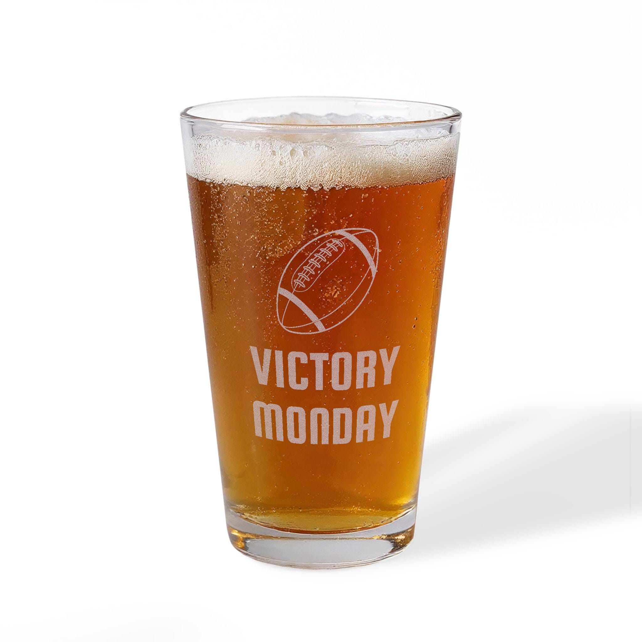 Raise a glass to Monday victories with this engraved 16 oz pint mixing glass. It feels cool and balanced in your hand, the clean lines and clear glass letting the bold engraved lettering sit front and center. Use it to stir late-night game-day cocktails, measure and mix in the home bar, or hold an after-practice celebratory drink. The engraving ages gracefully—no fading—so every clink keeps the memory of that win alive. It fits right into a sports-minded kitchen or bar cart, slipping easily into a dishwasher when the crowd clears. For adult collectors of game-day gear and home bartenders who track results as closely as recipes, this glass brings a little ritual to post-game downtime and small victories alike.