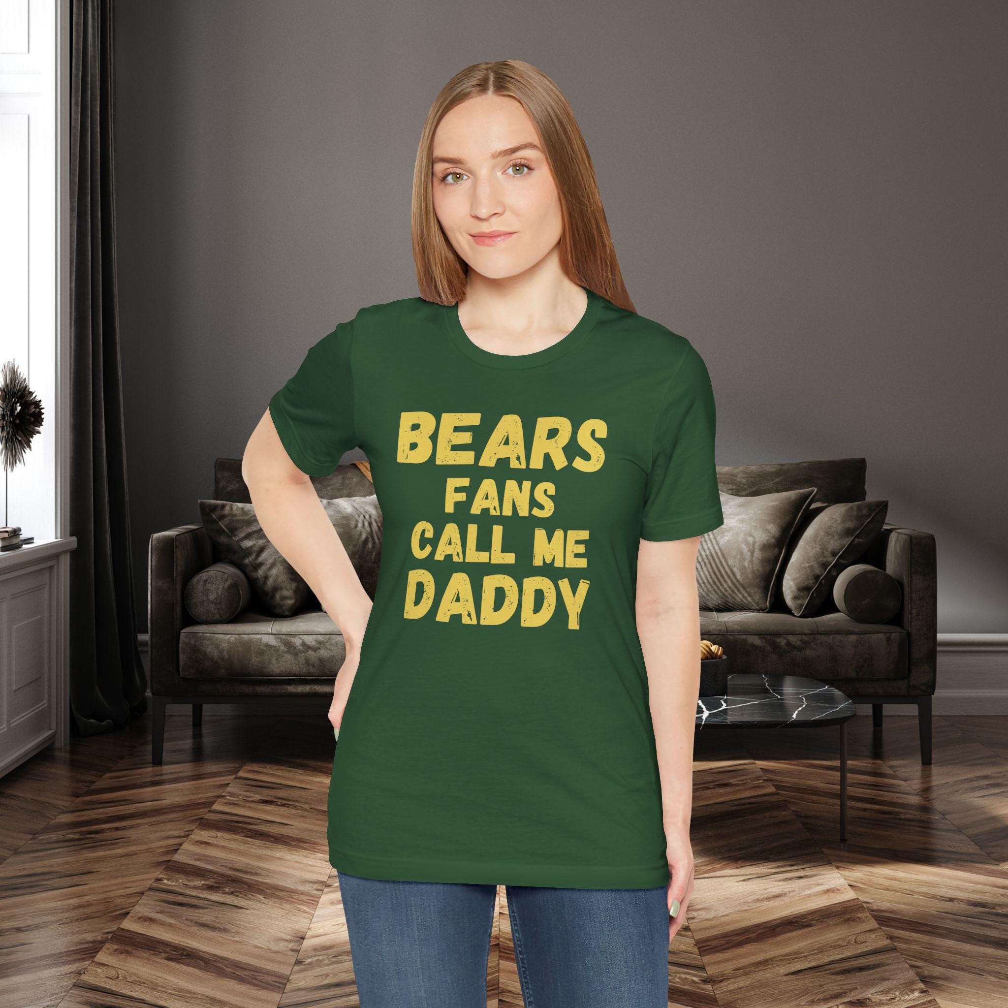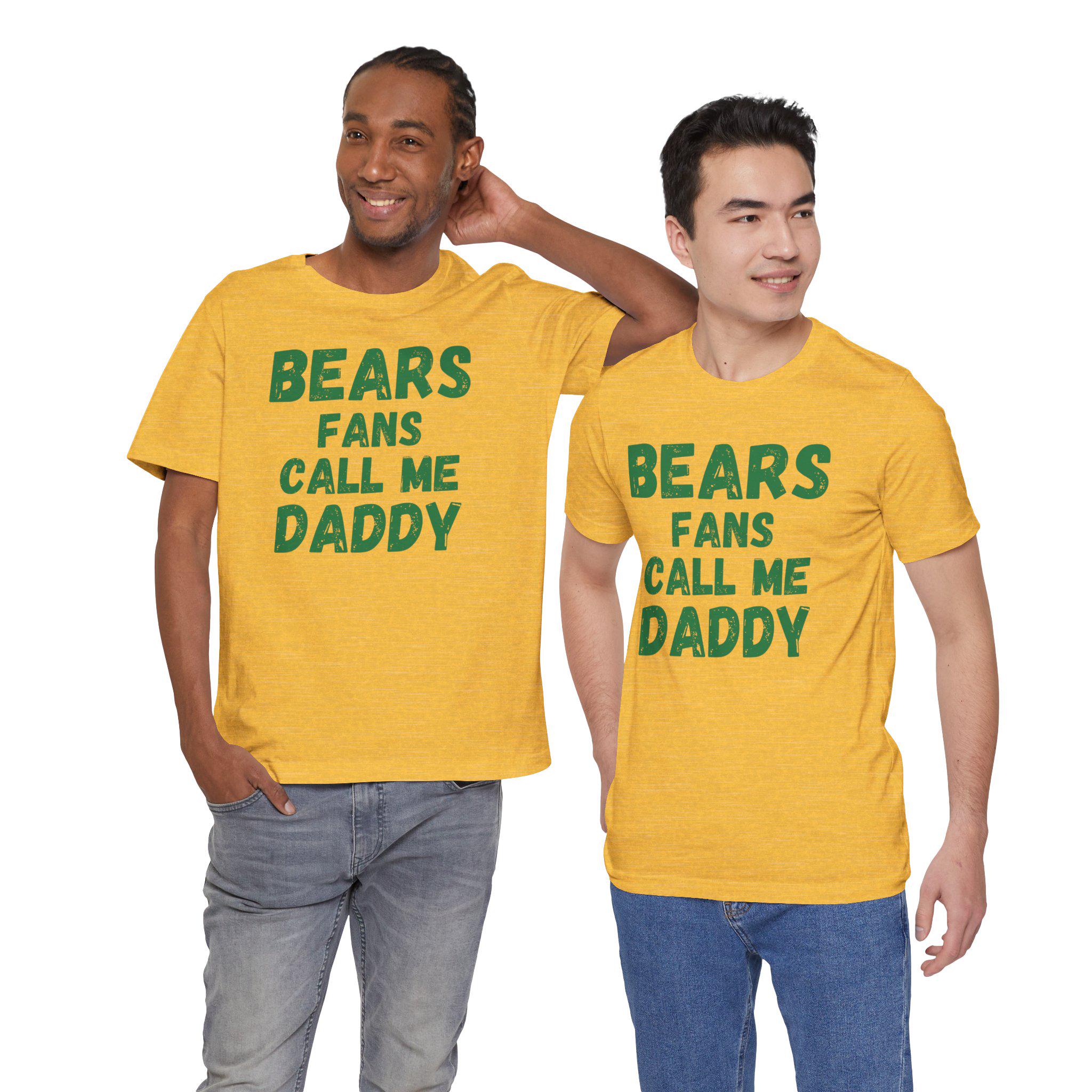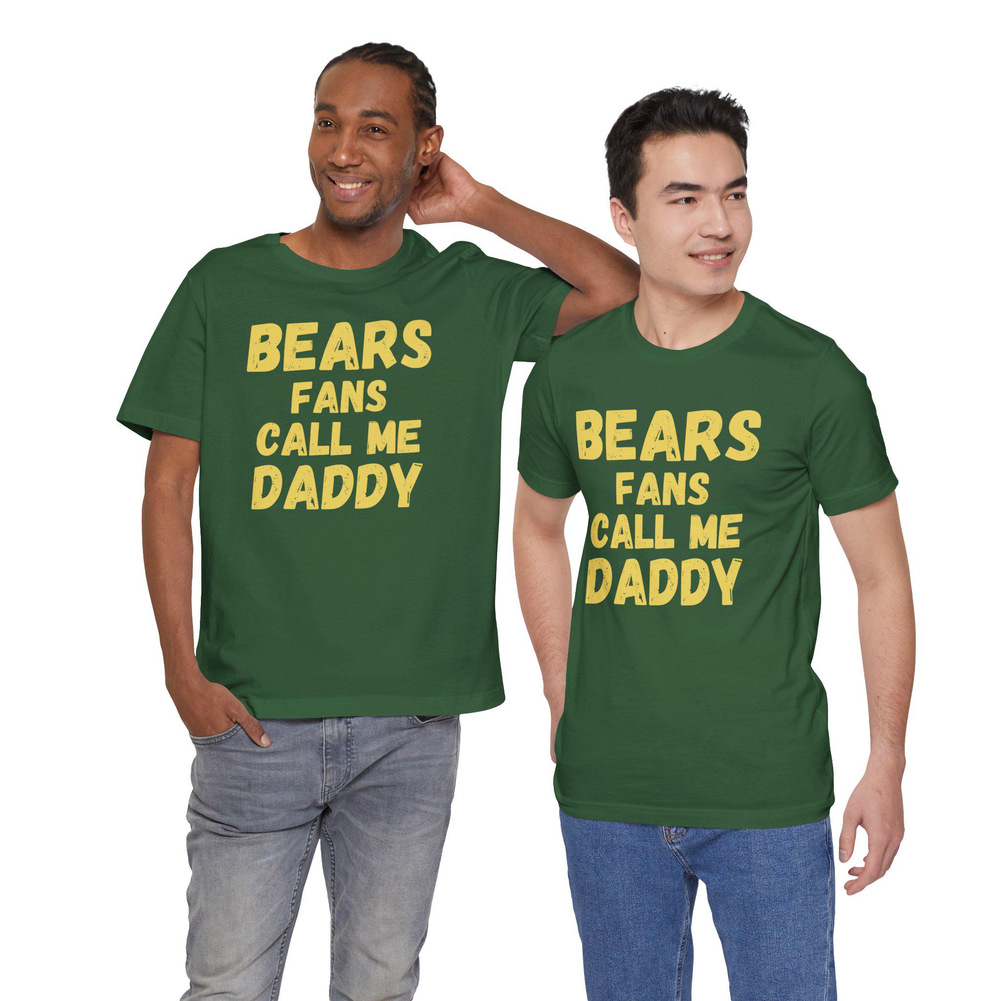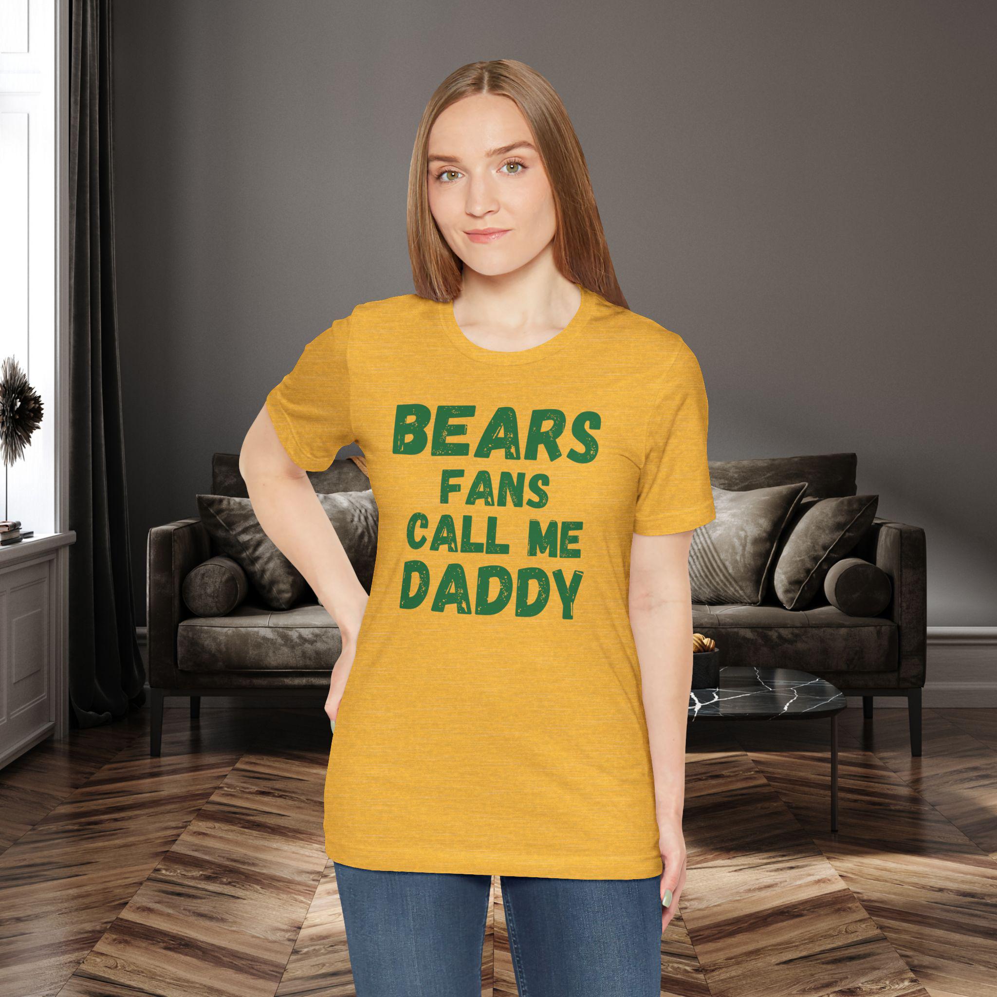 Wear your fandom loud and proud. This soft, lightweight tee carries a cheeky, confident vibe—‘bears fans call me daddy’—so you can stake your claim in the stands or at the watch party. The breathable Airlume cotton feels gentle against the skin during tailgates and late-night replays. Clean side seams and a ribbed crew neck keep the silhouette crisp whether you’re layering under a jacket or standing out in the crowd. Printed with detailed, durable techniques for vivid sleeve and neck graphics, this shirt keeps its personality wash after wash. It’s made with careful, ethical manufacturing and a tear-away label for comfort, so you can focus on the game, the banter, and the rush when the team makes the play.